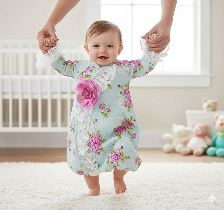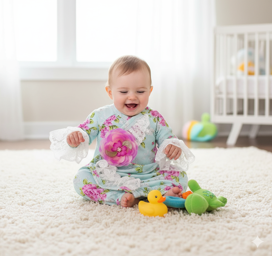 Heirloom quality, softest cotton foer Baby - that's what makes Bloomsbury so unique and gorgeous! Pair it with Matching cap.